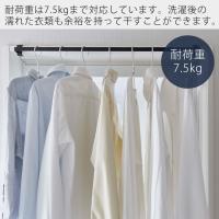 耐荷重は7.5kgまで対応しています。洗濯後の濡れた衣類も余裕を持って干すことができます。取付状況により耐荷重は変動する場合がありますので、使用中は取付部の強度・ピン・ネジのききめが充分かを定期的にご確認ください。