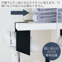 洗濯機や洗面所の戸棚下に引っ掛けるだけですぐに使うことができます。穴開けなどの加工は必要ありませんので簡単に取り付けられます。※棚の厚みによってガタつきが生じた場合のために、固定用の両面テープも付属しています。