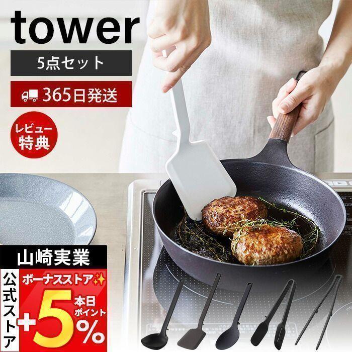 山崎実業 公式 タワー シリコーンキッチンツール 5点セット tower お玉 フライ返し 調理スプーン スプーントング 菜箸トング 食洗機対応