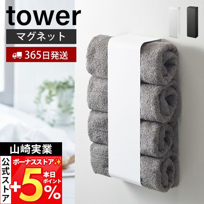 山崎実業 公式 タワー マグネットバスタオルホルダー tower 磁石 タオルラック タオルストッカー 4枚収納 洗濯機 横 冷蔵庫 3619 3620