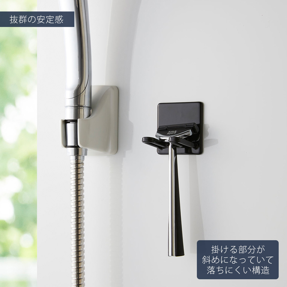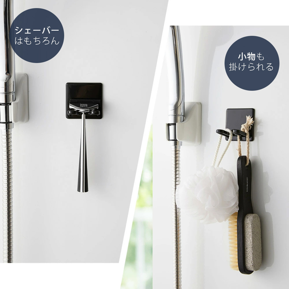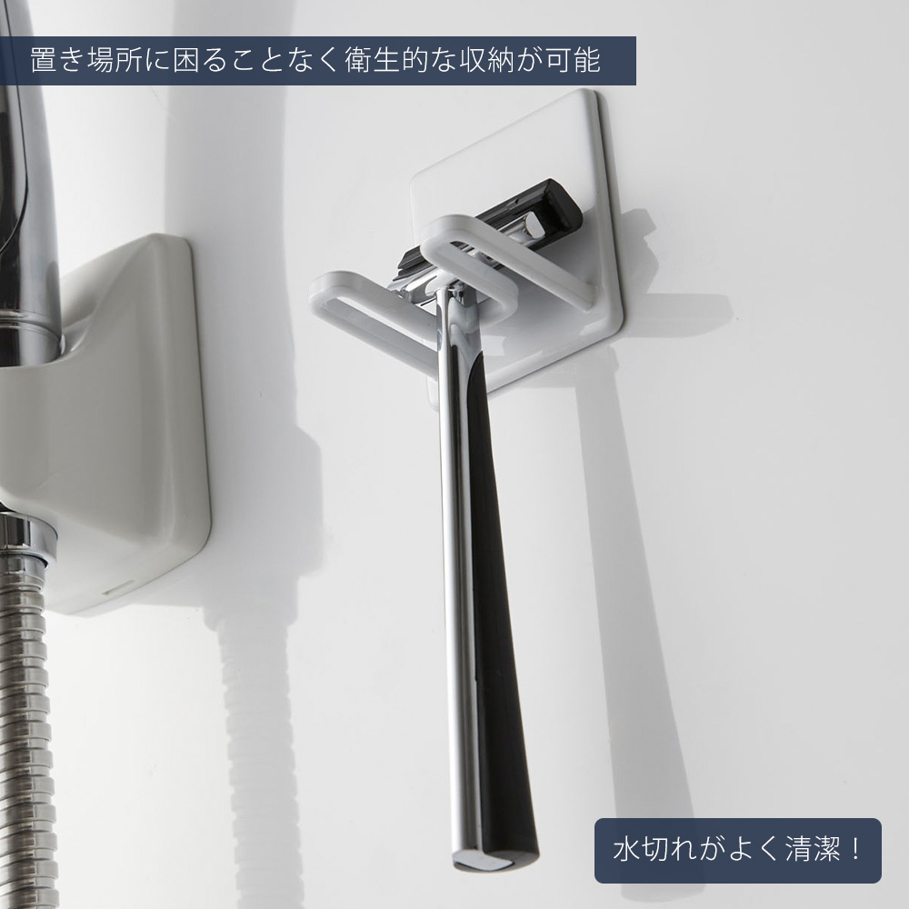 T字のひげ剃りやバスグッズを掛けられるコンパクトなシェーバーホルダー
