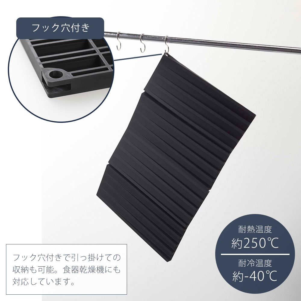 半分に折り畳めば鍋敷き・4つ折りにするとコンパクトに収納可能!