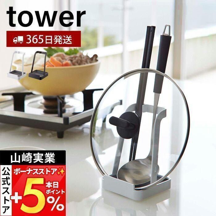 towerのロングセラー商品、調理中の置き場に困るお玉・菜箸・鍋ふたをコンパクトに一か所に収納できるスタンドです。