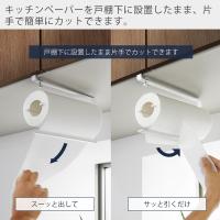 キッチンの吊り下げ戸棚に差し込んでネジ止めするだけの簡単設置。キッチンペーパーを浮かせて収納できるペーパーホルダーです。