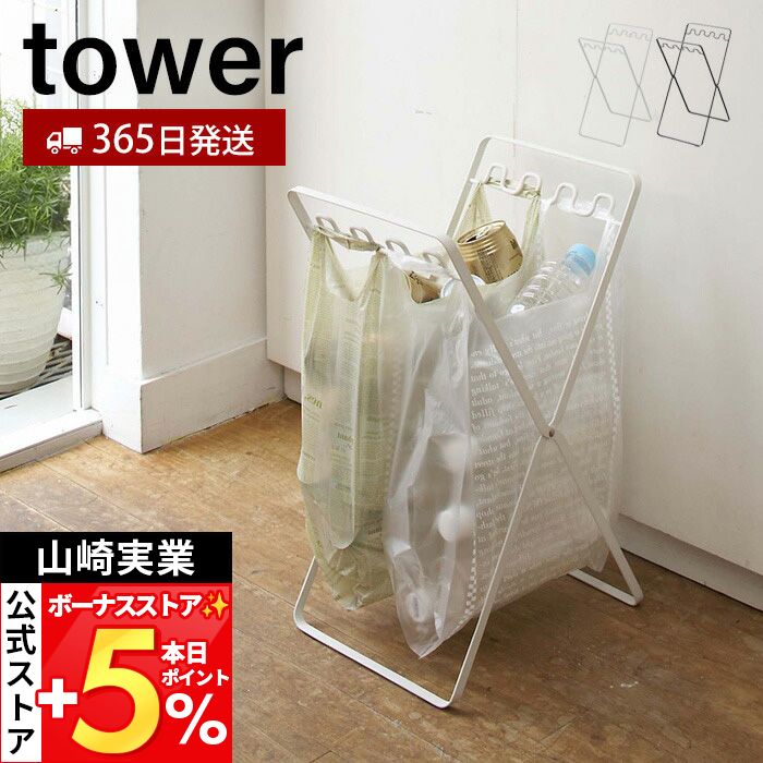 山崎実業 公式 タワー レジ袋スタンド tower ダストスタンド ゴミ箱 レジ袋スタンド 折りたたみ ワゴン 分別 コンパクト 6340 6341
