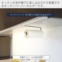キッチンの吊り下げ戸棚に差し込むだけの簡単設置。キッチンペーパーを収納できるホルダーです。