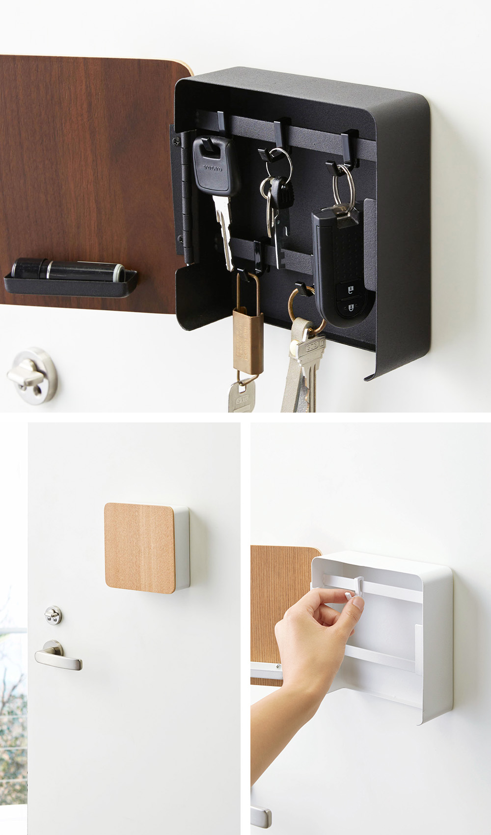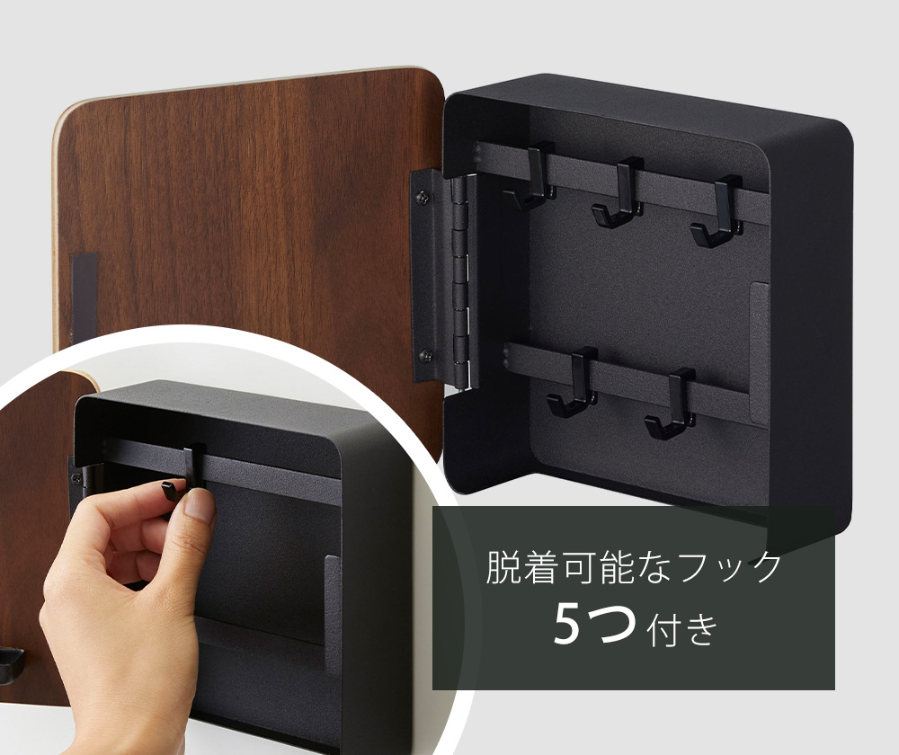 5つのフックを自由に脱着可能、便利な2段式の鍵収納