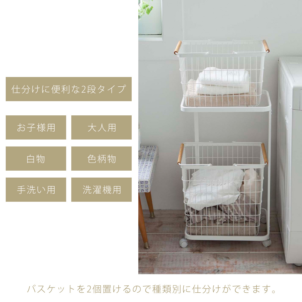 ランドリーバスケットが2台収納できるランドリーワゴン