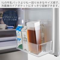 1Lの牛乳パックよりも一回り大きなサイズ感で、冷蔵庫のドアポケットにすっきり収納できます。