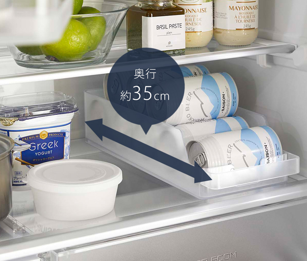 奥行約35cmとワイドなサイズで冷蔵庫奥のスペースまで無駄なく使えます。
