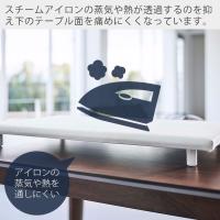 天板は3層構造のパーティクルボード(木質繊維材)を使用しています。スチームアイロンの蒸気や熱が透過するのを抑え、下のテーブル面を痛めにくくなっています。