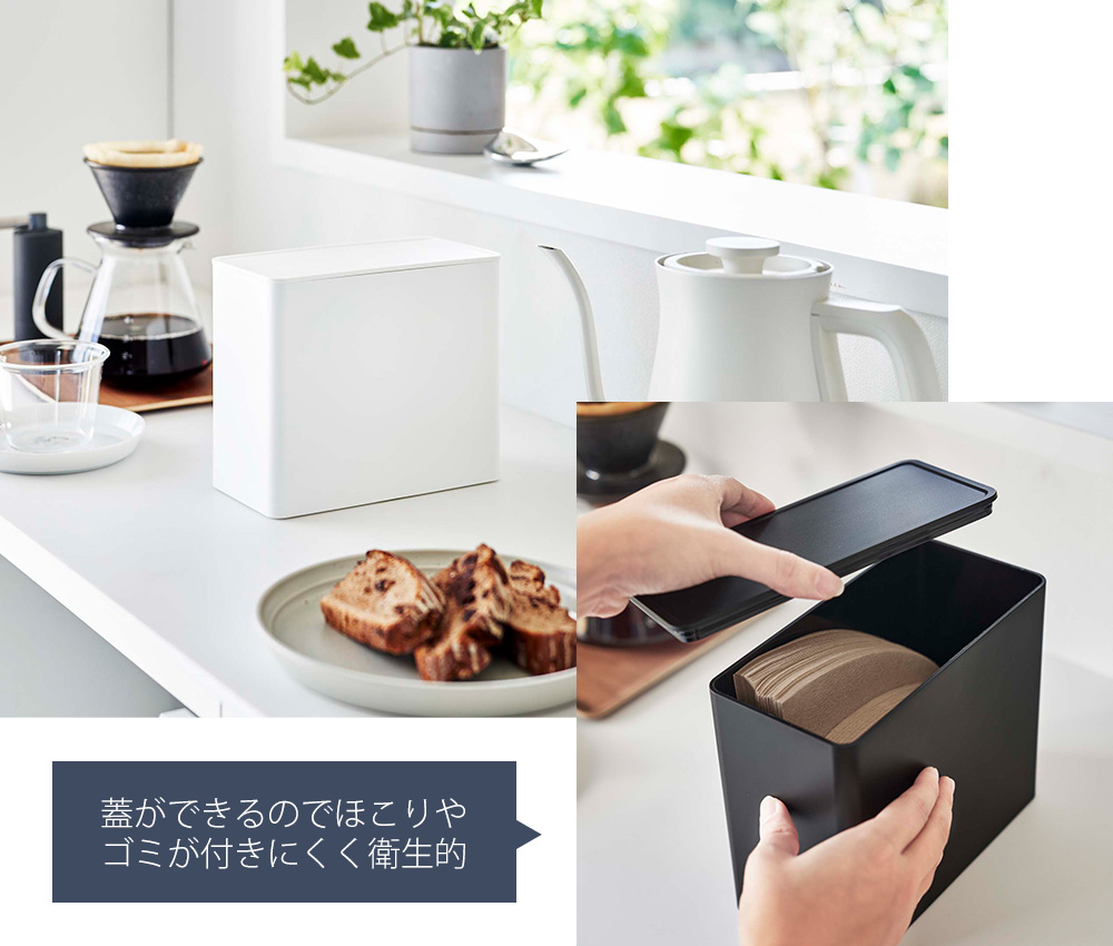 扇形・円すい型コーヒーペーパーフィルターを収納可能!
