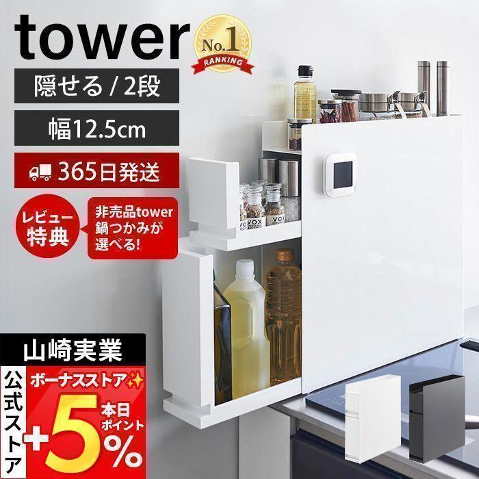 大きな調味料ボトルもすっきり収納できる、大人気tower隠せる調味料ラックから引き出し部分容量が約1.5倍アップした2段タイプが登場!