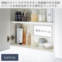 無駄なスペースができやすい洗面鏡の中の収納スペースを有効活用できる便利なラックです。