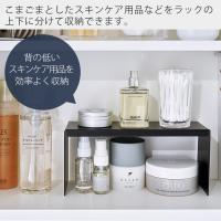 こまごまとしたスキンケア用品などをラックの上下に分けて収納できます。