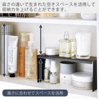 洗面鏡の中の収納スペースを有効活用できるコの字ラック2個セット。お好みの場所に棚を追加することでスペースの無駄を無くしスキンケア用品などをスッキリ整頓できます。背の高さによって分けて置くことでデッドスペースを無くして収納力が上がります。こまごまとしたスキンケア用品を棚の上下に分けて収納できます。
