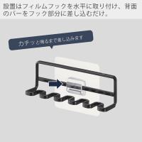 設置は平らな壁面にフィルムフックを水平に取り付け、本体背面のバーをフック部分に差し込むだけととても簡単です。