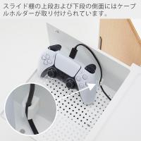 リビングなどで散らかりがちなゲーム機とコントローラーを、見えないように隠しながら美しく収納することができます。