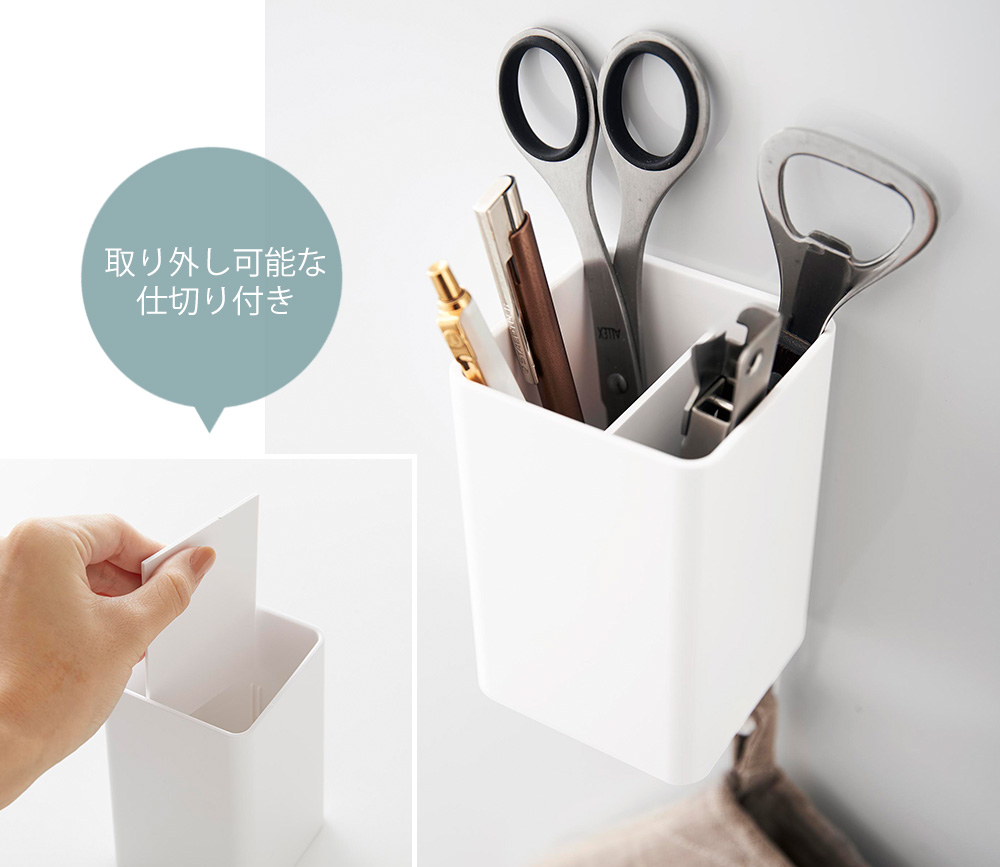 取り外し可能な仕切りが付属します。入れるものの大きさに合わせて取り付けが可能です。