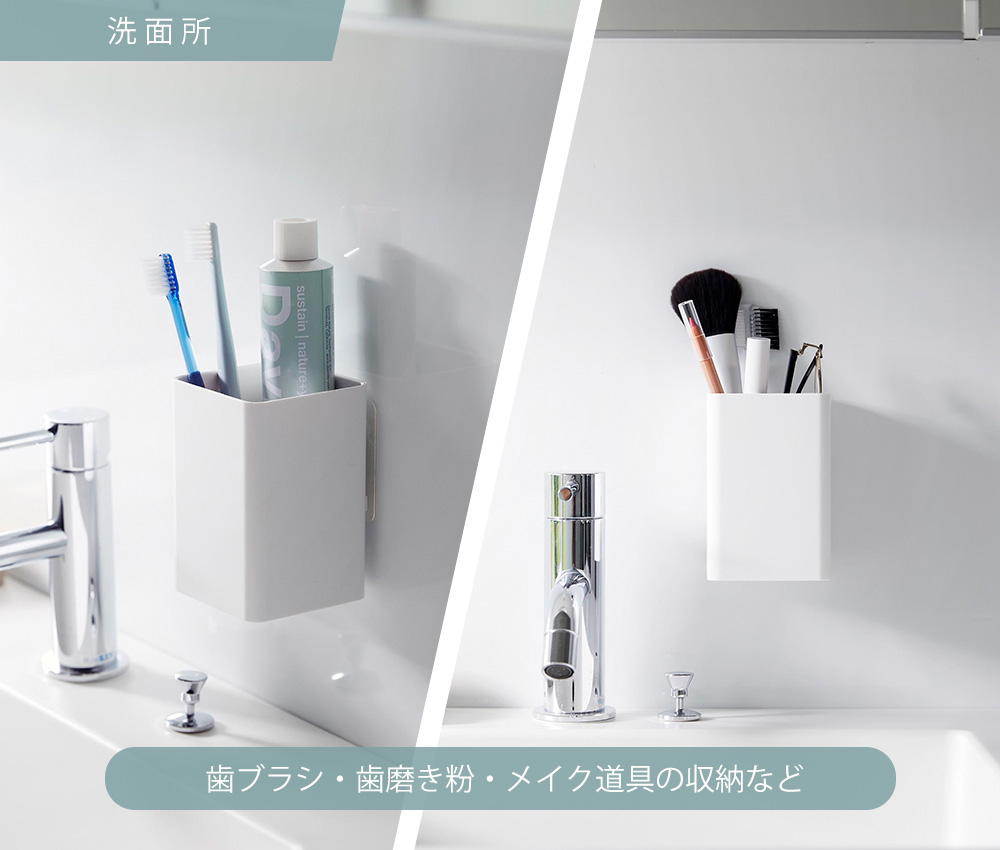 洗面所では歯ブラシ・歯磨き粉をはじめ、メイク道具収納などに便利です。