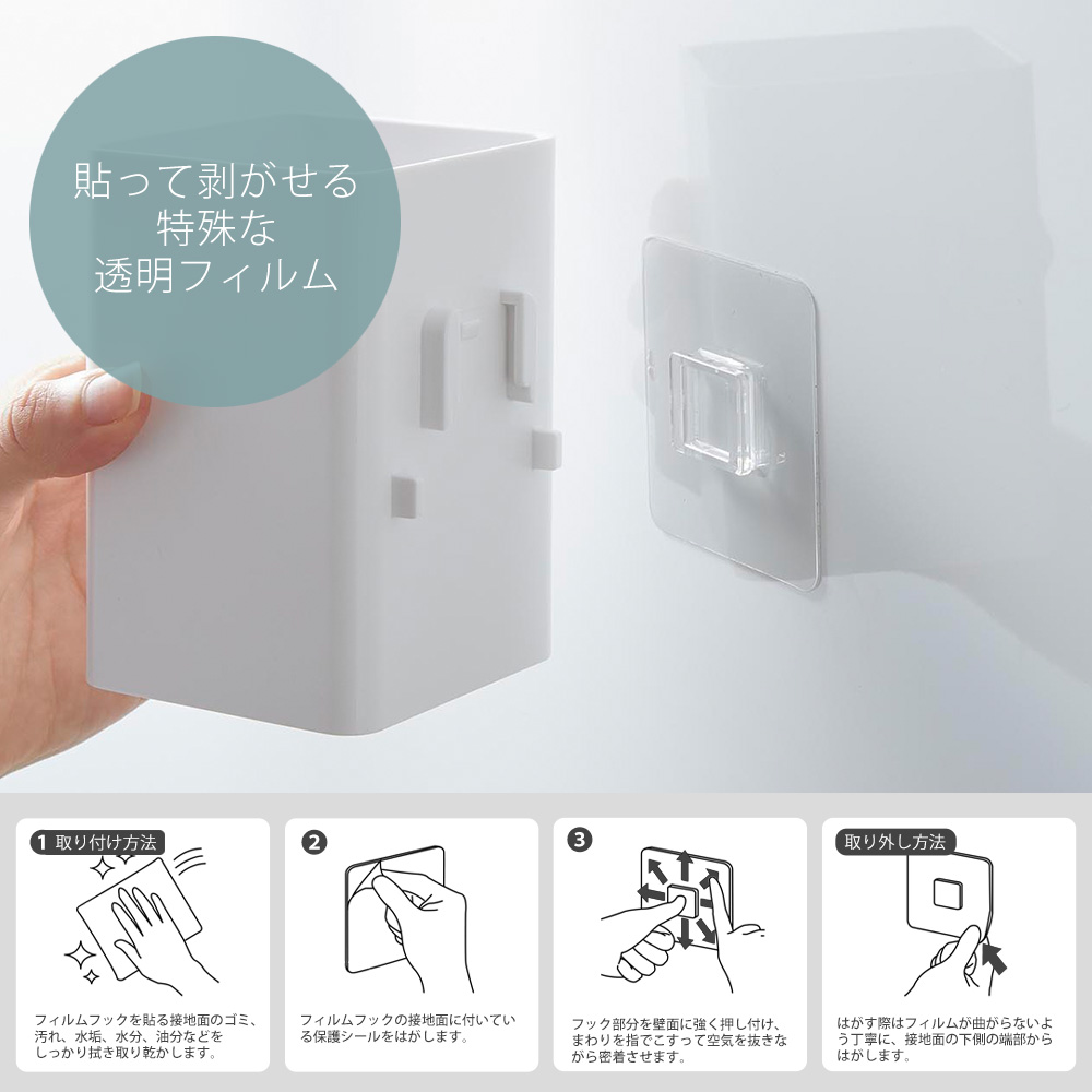 ※フィルムフックは消耗品です。何度もはがしたり、洗うことによって接着力は低下します。