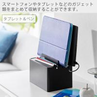 スタンド部分にはスマートフォンやタブレットを、トレー部分にはスマートウォッチやスタイラスペンなどを、まとめて収納することができます。
