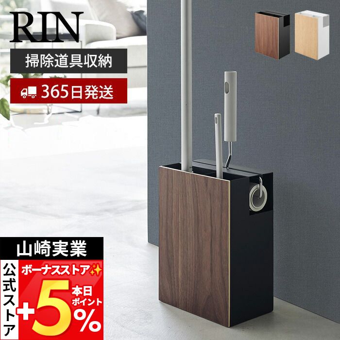 木目デザインでインテリアに馴染む掃除用品収納スタンド
