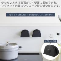 使わないときは磁石がつく壁面にペタっと収納できる、背面にマグネットが内蔵されたシリコーン製の鍋つかみです。両手で使える嬉しい2個セットでお届けします。