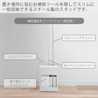 | 対応サイズ | ハンディワイパーのヘッド:約幅7.5×奥行5cm×高さ18cm以下 フローリングワイパーのヘッド:約幅12cm×奥行5cm×高さ26cm以下 ハンディカーペットクリーナーのヘッド:約幅16cm×直径6.5cm以下 |