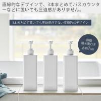 直線的なデザインで、3本まとめてバスカウンターなどに置いても圧迫感がありません。容器は幅・奥行き共に約7cmのスリムデザイン。(ポンプを含めると奥行きは約7.5cmとなります)