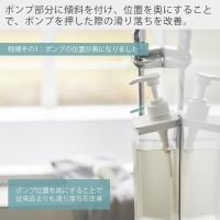 ポンプ部分に傾斜を付け、ポンプの位置を奥にすることで、ボトルを壁に設置したままポンプを押しても、滑り落ちにくくなりました。