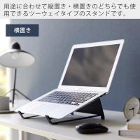 用途に合わせて縦置き・横置きのどちらでも使用できるツーウェイタイプのスタンドです。ノートPCやタブレットPCをスリムに収納できます。