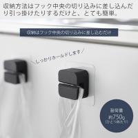 収納方法はフック中央の切り込みに差し込んだり引っ掛けたりするだけと、とても簡単。耐荷重はフック1つあたり750gあります。