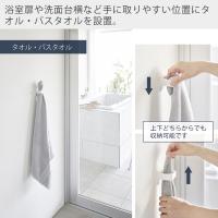 バスタオルは浴室扉付近に、フェイスタオルは洗面台横や洗面台下扉に取り付ければいつでも手に取ることができて便利です。タオルはホルダーの上下どちらかでも収納可能です。