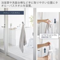 バスタオルは浴室扉付近に、フェイスタオルは洗面台横や洗面台下扉に取り付ければいつでも手に取ることができて便利です。タオルはホルダーの上下どちらかでも収納可能です。
