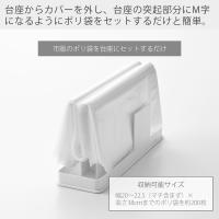 台座からカバーを外し、台座の突起部分にM字になるようにポリ袋をセットしてください。幅20〜22.5(マチ含まず)×高さ38cmまでのポリ袋を約200枚が収納可能です。