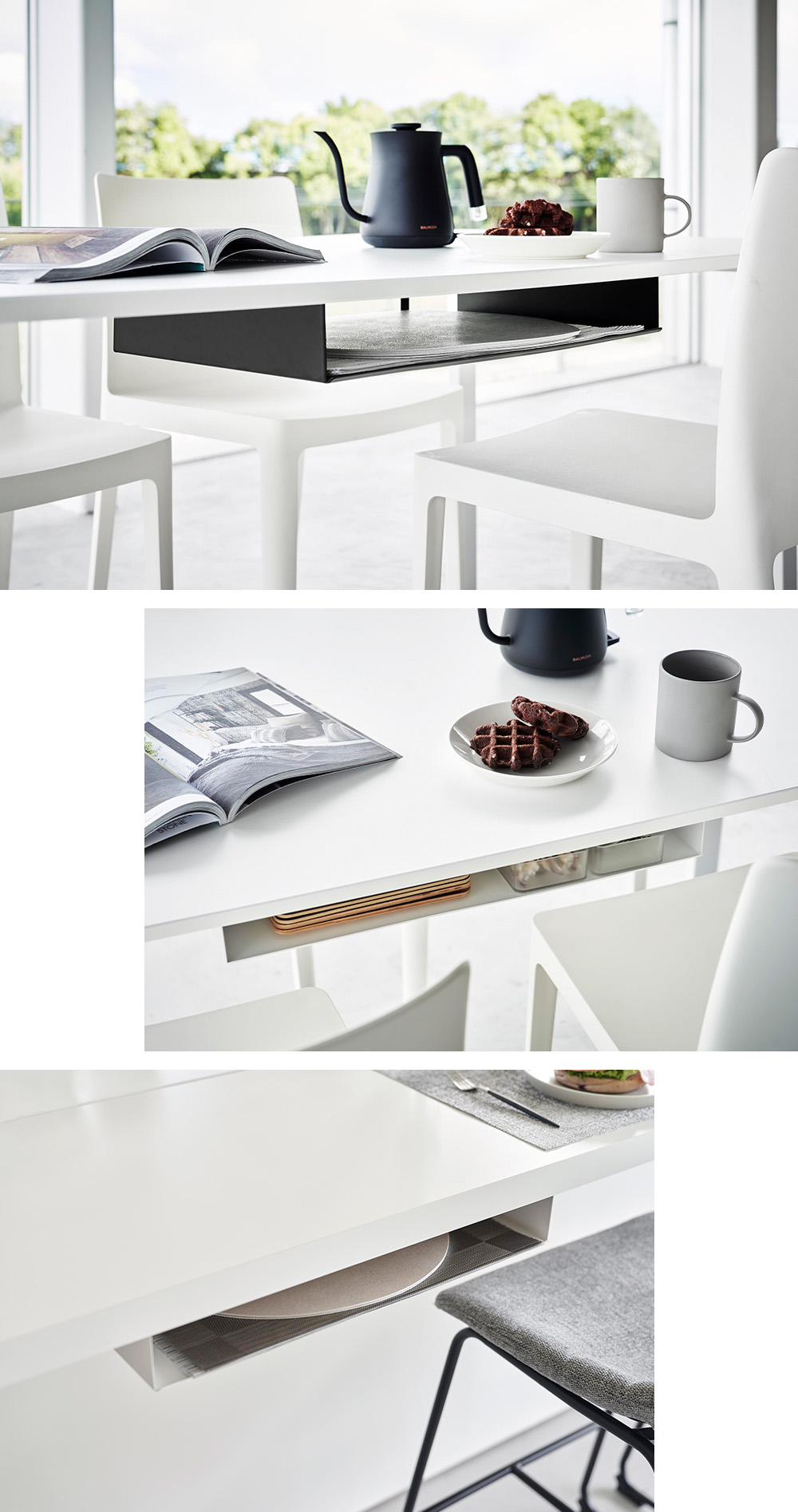 フックを取り付けずに置き型としての使用も可能です。スリムな形なので卓上でのご使用でもかさ張らず便利です。