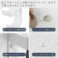 取り付ける壁面に合わせて石こうボードピンもしくは木ネジのいずれかで固定してください。ピンやネジの先端は非常に鋭利ですので、取り付け時に思わぬケガをする恐れがあります。お取り扱いにご注意ください。