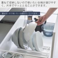 スタンドはベースとお椀を支える仕切り部のみとシンプルで、器を上からも横からも取りやすい構造です。縦向き・横向きどちらでも設置でき、引出し・戸棚どちらでもご使用いただけます。