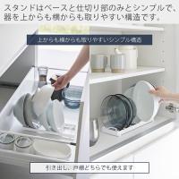 戸棚の中に縦向きに設置してもスタンドごと手前に引いてお椀を取り出せます。引き出す際はスタンドのベースをしっかりと持ち、ゆっくりと動かしてください。