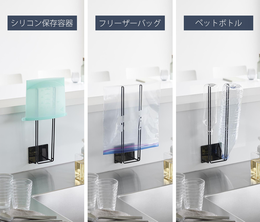 ゴム手袋以外に、自立式シリコン保存容器・フリーザーバッグ・ペットボトルなどを干すのにも便利です。