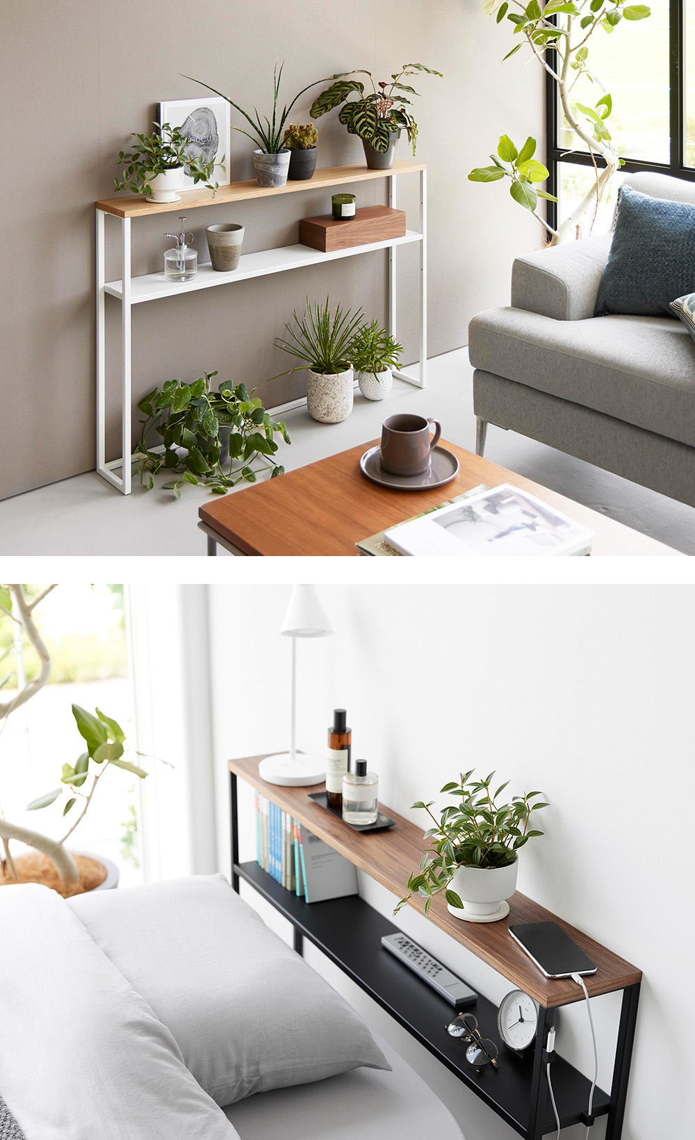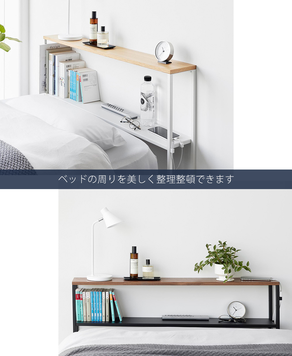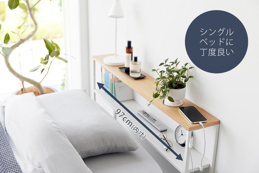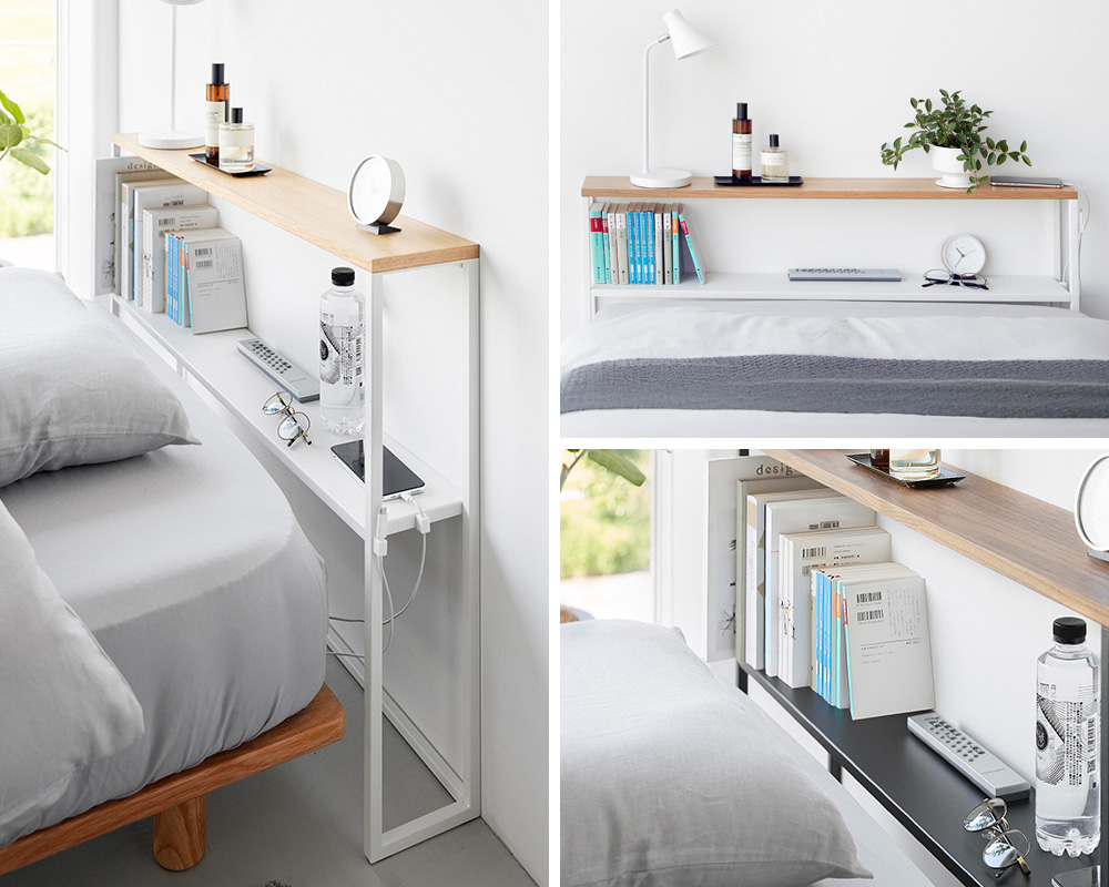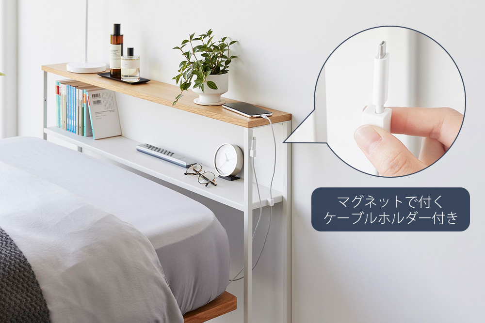 ベッド周りにスマートフォンや時計、ライトなどをスッキリと収納することができます。