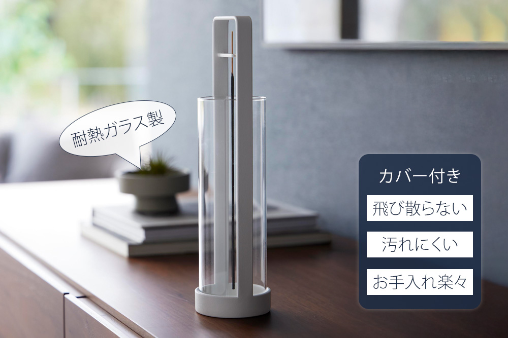 灰飛びを防止するカバー付きでお部屋が汚れにくくなっています。カバーは安心の耐熱ガラス製です。
