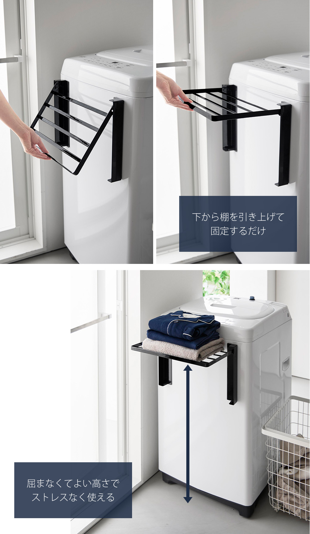 | 洗濯機横にマグネットで簡単取り付け |