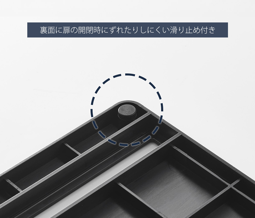 スタンドの裏面には滑り止めクッション付き。扉の開閉時にスタンドが動いたり、庫内に傷がつくのを防ぎます。