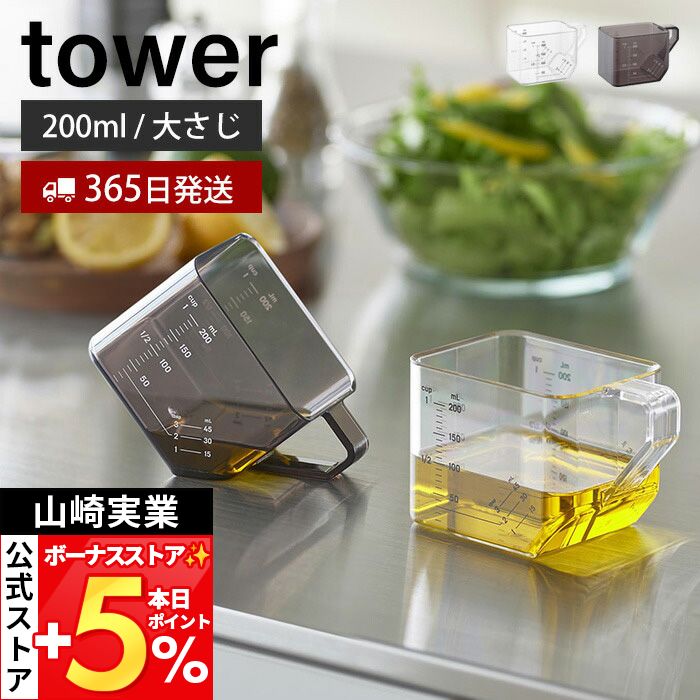 山崎実業 公式 タワー 大さじも量れる計量カップ tower メジャーカップ 2way 目盛り 1カップ 大さじ3 電子レンジ 食洗機対応 10143 10144