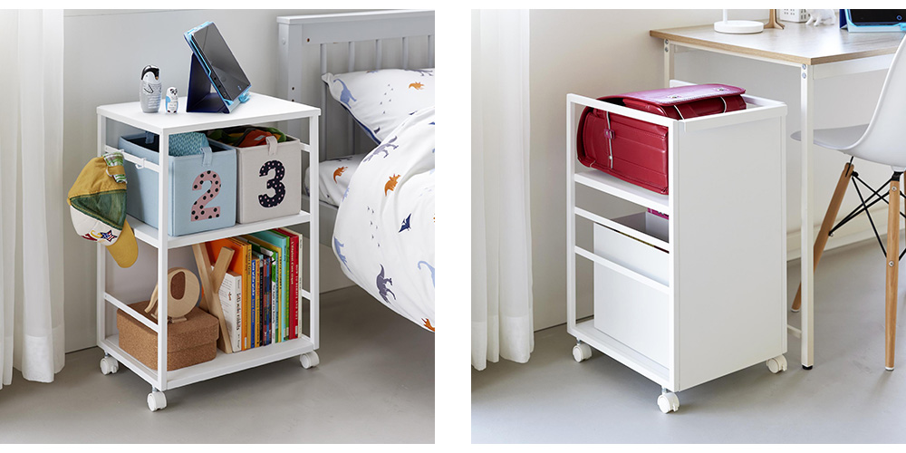 食品類やペット用品、お子様の学用品まで様々な物をストックできるワゴン
