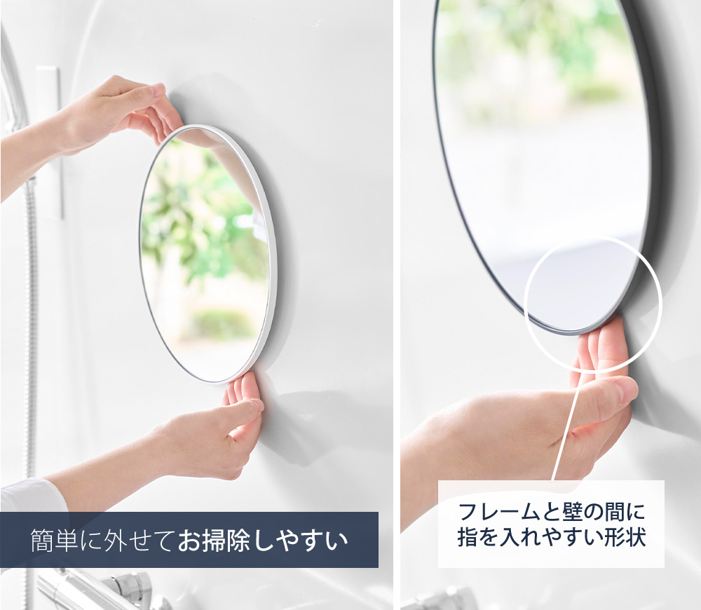 フレームと壁の間に指を入れやすい形状になっており、簡単に外すことができるので、日々のお掃除が楽になります。