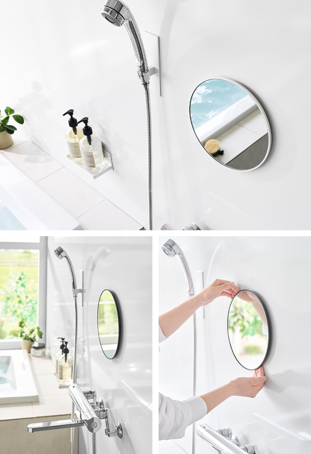 | 鏡のないお風呂にマグネットで取り付けられる! |