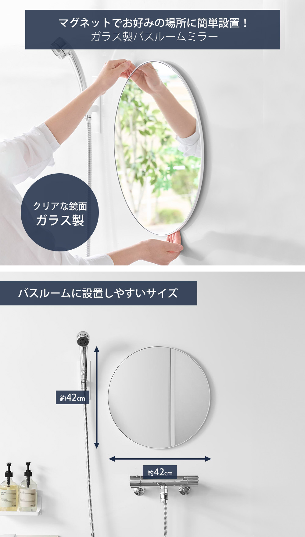 >> マグネットバスルームミラー 丸型 23cm | >> マグネットバスルームミラー 丸型 42cm | |